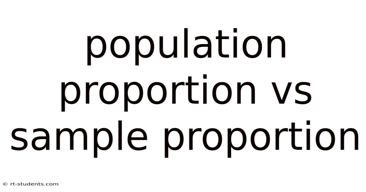 Understanding the difference between population proportion and sample proportion is crucial in statistics, particularly in inferential statistics where we draw conclusions about a larger group based on a smaller subset. Think about it: we'll also explore the relationship between them and the concept of sampling error. This article will get into the nuances of both, explaining their definitions, how they are calculated, and their significance in various statistical analyses. By the end, you’ll have a solid grasp of these fundamental statistical concepts and their practical applications Small thing, real impact..