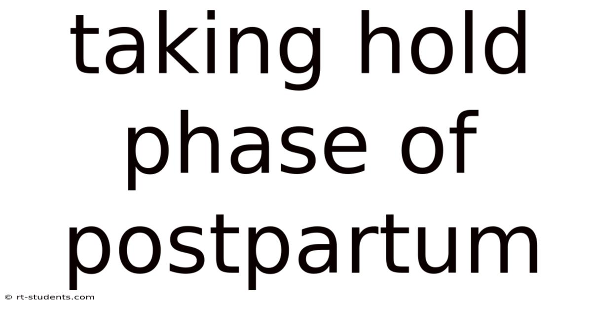 - How long does the taking hold phase last? The taking hold phase typically lasts from day 2 to around 10 days postpartum, but it can vary.